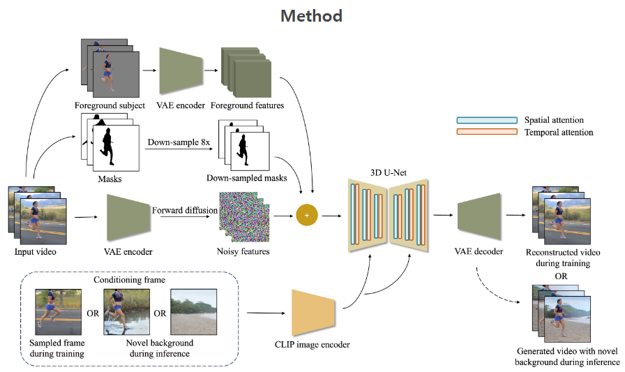이번 ActAnywhere도 영상AI인 만큼 3D U-Net에 대한 내용이 포함되어 있습니다만, 어려운 용어는 제외하고 쉽게 풀어 설명하겠습니다. 피사체가 움직이는 장면이 담긴 영상 클립과 배경으로 사용할 이미지를 입력합니다.