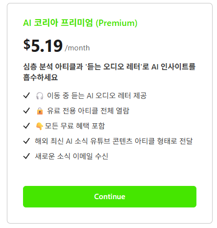 👉한달에 5.19$ 투자하셔서 편안하게 AI 인사이트 흡수하세요.