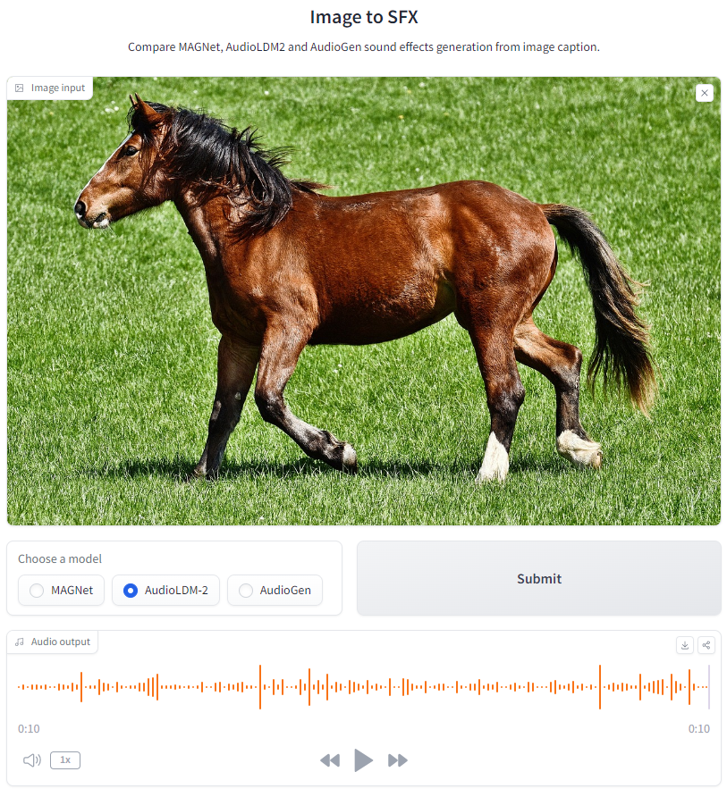 Image-to-SFX: https://huggingface.co/spaces/fffiloni/Image2SFX-comparison