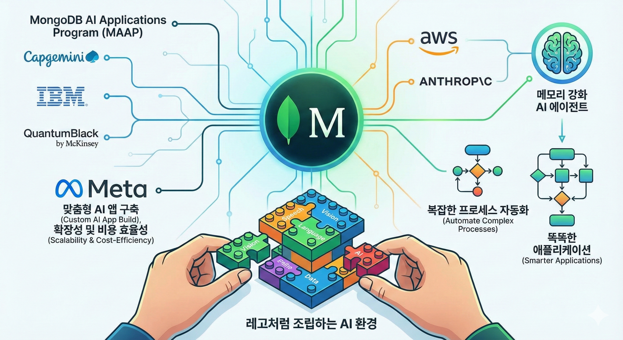 또한 AWS, Anthropic과 함께 메모리 강화 AI 에이전트를 지원하는 참조 아키텍처를 발표하며, 기업들이 복잡한 프로세스를 자동화하고 더 똑똑하고 반응성 높은 애플리케이션을 개발할 수 있도록 돕고 있습니다. 이는 마치 레고 블록처럼 필요한 AI 기능을 조립해서 쓸 수 있는 환경을 만드는 것과 같습니다.