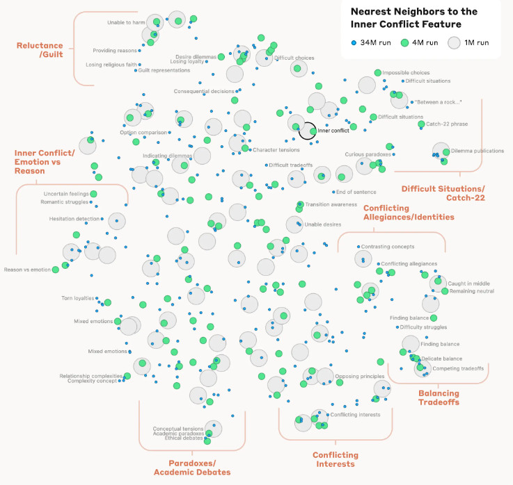 하지만 엔트로픽은 Claude Sonnet 모델의 내부에서 수백만 개의 개념이 어떻게 표현되는지 확인하는 데 성공했습니다. LLM을 자세히 들여다본 최초의 사례라 할 수 있습니다.