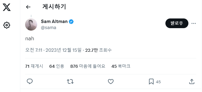 하지만 OpenAI CEO 샘 알트만이 해당 자료는 거짓임을 X를 통해 밝혔습니다.