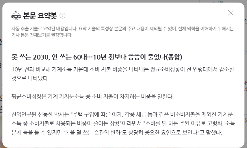네이버 뉴스에서 자체적으로 제공해 주는 본문 요약봇과 비교하면, 수치적인 부분에서 많은 아쉬움이 있습니다. 나름 잘 요약해 줬지만, 제가 원하는 수준의 정밀한 요약이 아니라서 이 프롬프트를 직접 제작했습니다.