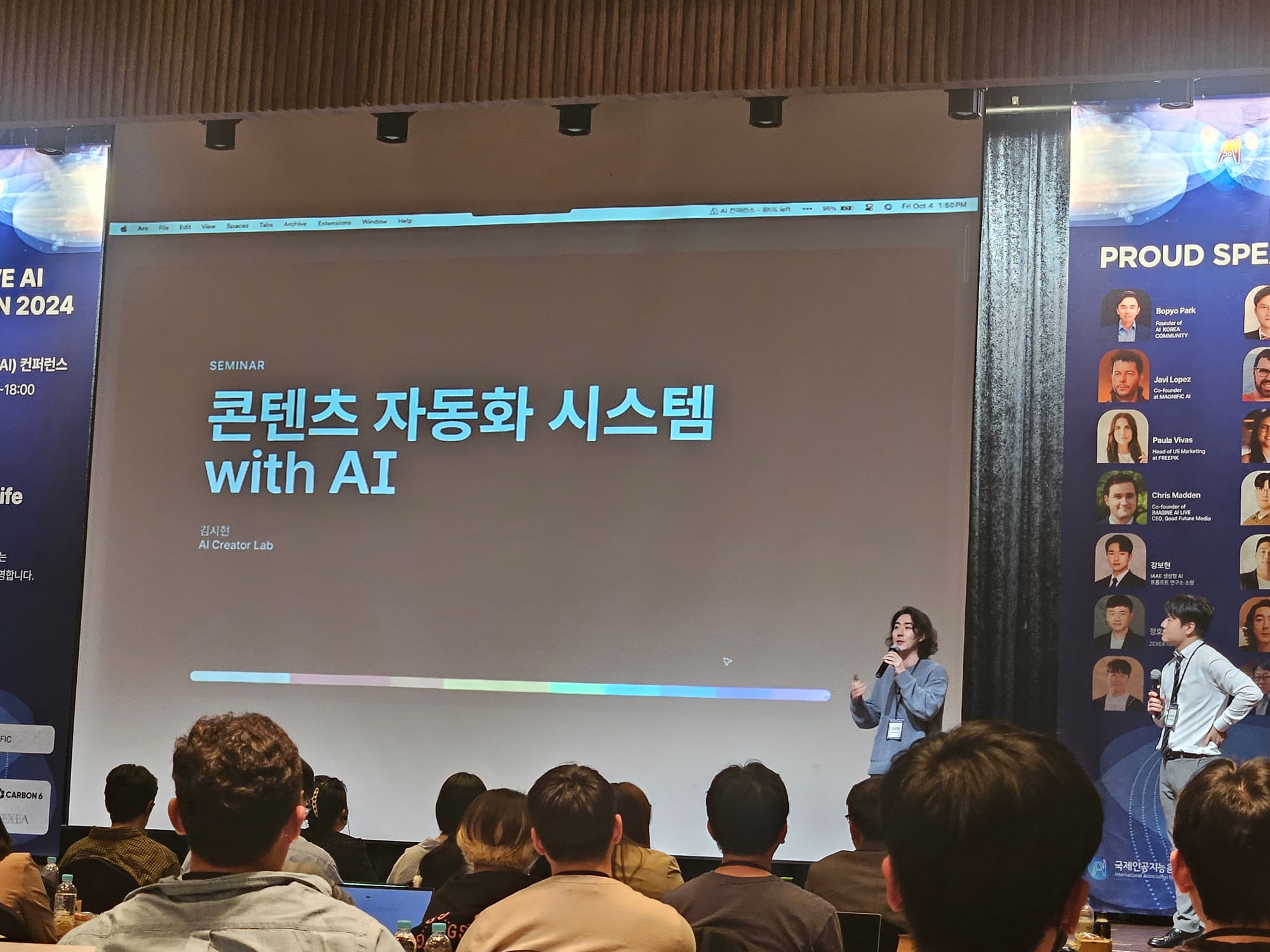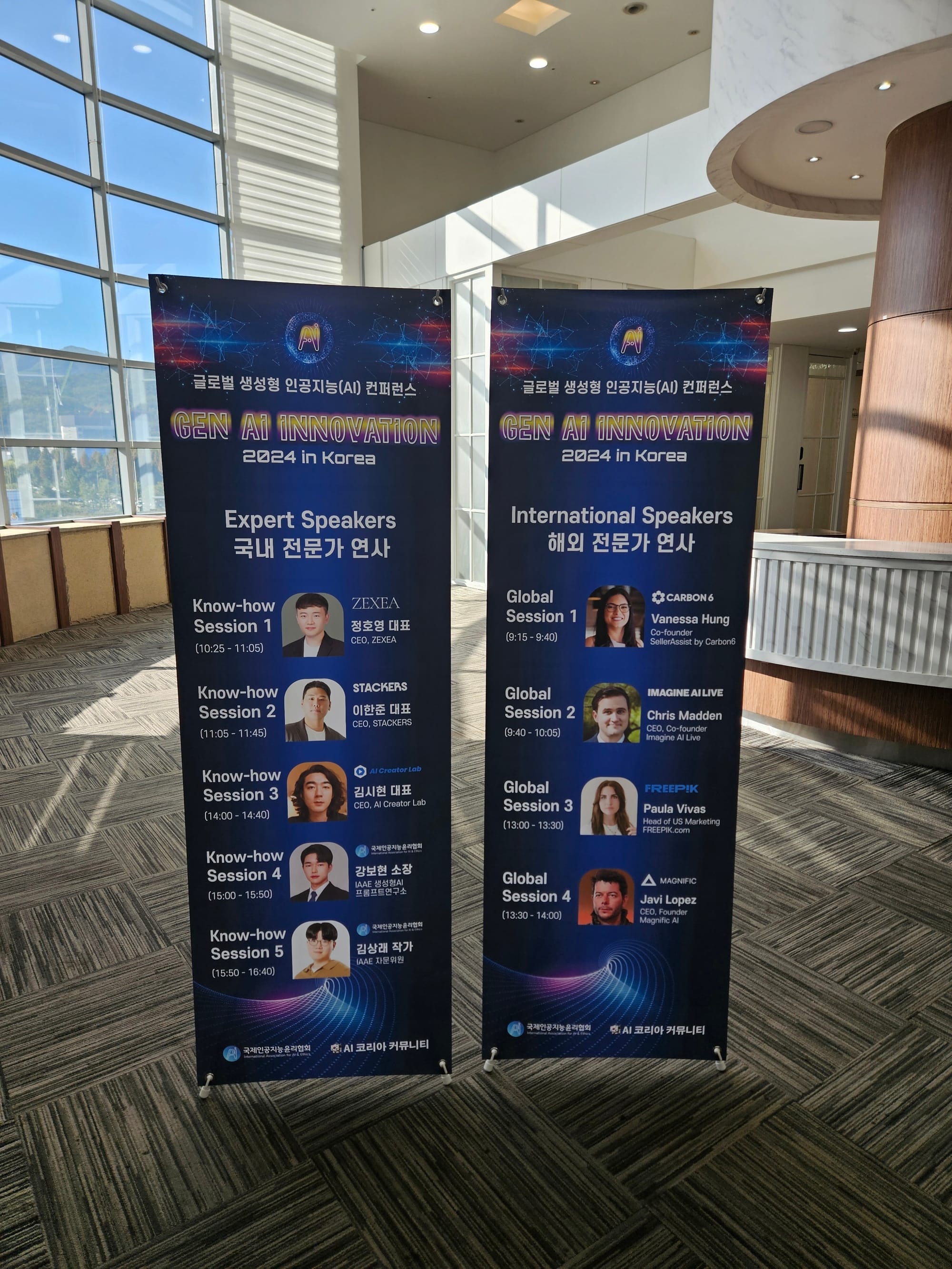 ์ฃผ์ ์ฐ์ฌ๋ก๋ AI ์ฝ๋ฆฌ์ ์ปค๋ฎค๋ํฐ์ ์์ฅ ๋ณดํ๋๊ณผ ์ดํ์ค STACKERS ๋ํ, ์ ํธ์ ZEXEA ๋ํ, ๊น์ํ AI Creator Lab ๋ํ, ํ๋๊ท ๋๋ ํฐ์คํ ํฌ ์ฌ์ ๋ถ์ฅ์ด ์ฐธ์ฌํ์ต๋๋ค. ํด์ธ ์ฐ์ฌ๋ Carbon6์ ๊ณต๋์ฐฝ์ ์ Vanessa Hung, IMAGINE AI LIVE์ CEO Chris Madden, ํ๋ฆฌํฝ(FREEPIK)์ Paula Vivas ๋ง์ผํ ์ด๊ด๊ณผ ๋งค๊ทธ๋ํฝ(MAGNFIC) Javi Lopez CEO๊ฐ ์ฐธ์ฌํ์ต๋๋ค.