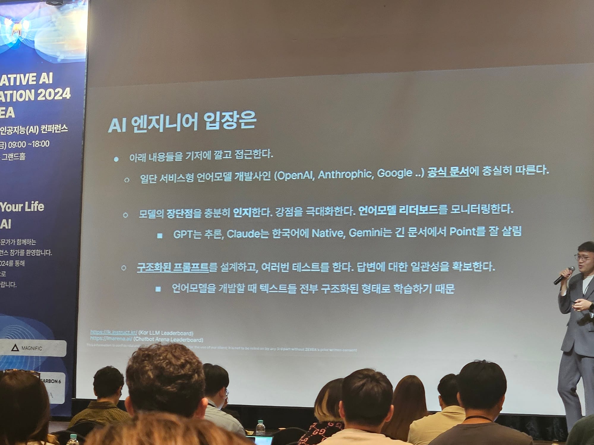 ์๋ ํ์ธ์. ๋ถ๋ฃจํ์ ๋๋ค. ๊ฐ์ธ์ฌ์ ์ด ์์ด ์ง๋ 10์ 4์ผ ์์ฌ aT์ผํฐ์์ ์งํ๋ GEN AI 2024 ํ๊ธฐ ๊ธ ์ด์ ์์ผ ์ฌ๋ฆฝ๋๋ค. ์ด๋ฒ์ ์งํ๋ AI ์ปจํผ๋ฐ์ค๋ ๊ตญ๋ด ์ต์ด๋ก ์๋ฏผ๊ณผ AI ์ ๋ฌธ๊ฐ๋ค์ด ํจ๊ปํ ์๋ฆฌ๋ก ๊ธ๋ก๋ฒ AI ๊ธฐ์ ๊ณผ ํ์ฉ ๋ฐฉ๋ฒ์ ๋ํด ๋ฐฐ์ธ ์ ์์์ต๋๋ค.