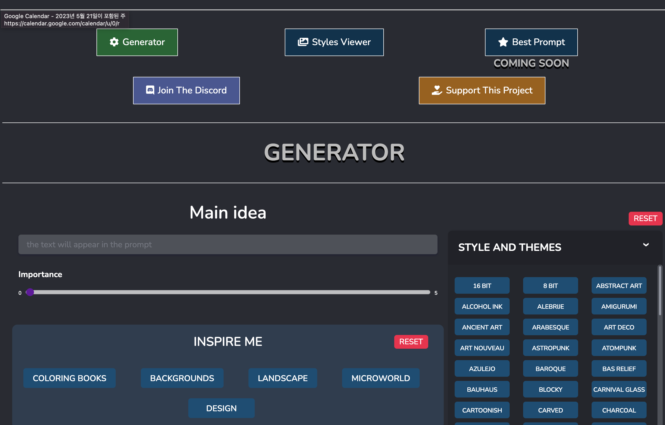 두번째 알려드릴 내용은 미드저니 아이디어 생성기입니다. 저 같은 경우에는 NFT를 준비하면서 많이 뽑아보고 있습니다. 전혀 생각치 못했던 이미지들이 생성이 되어서 너무 재밌고 배우는게 많습니다.