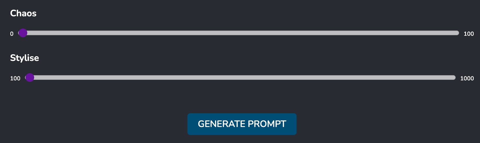 7. Chaos와 Stylize가 남았습니다. 이 두개는 각각 100, 1000의 숫자가 보여서 파라미터와는 조금 성질이 다릅니다. Chaos의 경우 숫자가 높을수록 내가 입력한 정보값의 반영을 덜하고 완전 새로운 아이디어를 첨가합니다. Stylize의 경우 숫자가 높을수록 좀 더 디테일한 면모를 띈다고 합니다. 하지만 저는 이 두 가지를 잘 사용하지 않습니다. 뚜렷하게 결과가 바뀌는건 아니라고 생각했기 때문입니다.