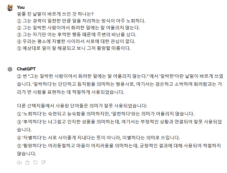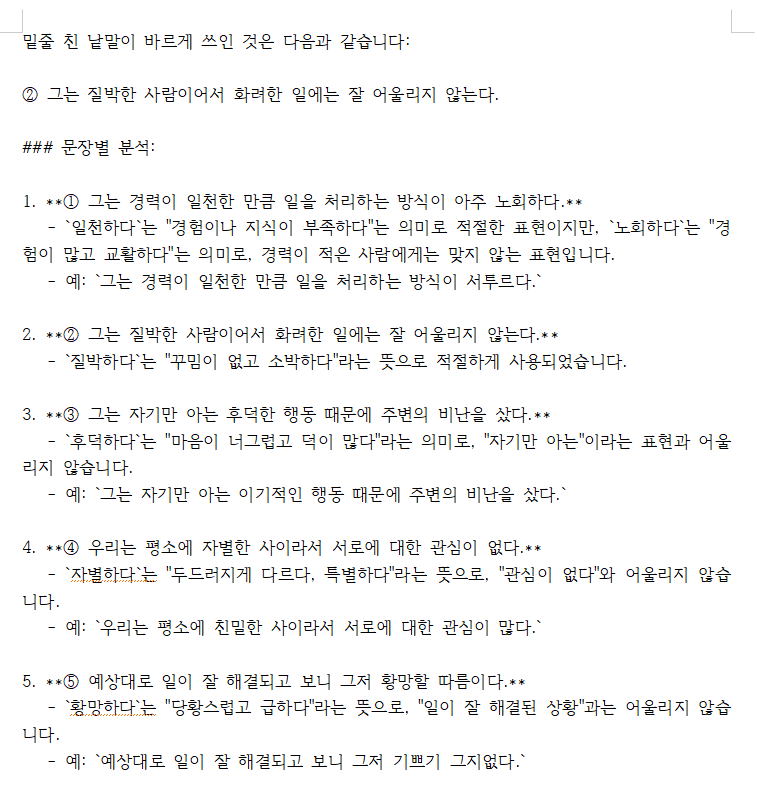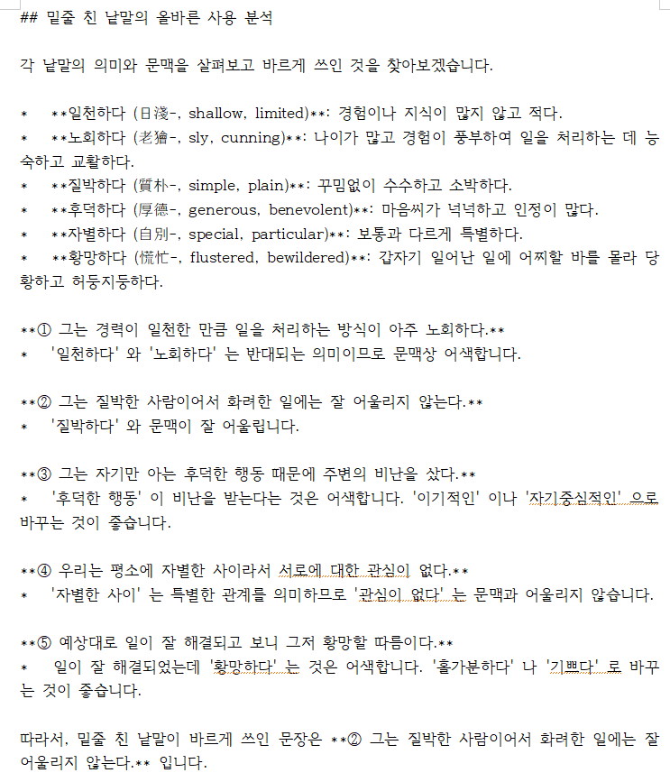 두 모델 모두 정답을 맞췄습니다. 정답은 2번 입니다. 각 모델의 답변을 하나씩 자세히 살펴보겠습니다.