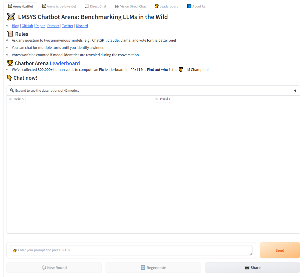 Chatbot Arena(AI모델 벤치 사이트): https://chat.lmsys.org/