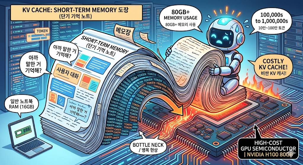 요즘 AI가 한 번에 처리하는 대화 길이(컨텍스트 윈도우)가 10만, 100만 토큰으로 늘어나면서, 이 메모장 문제는 AI 서비스의 최대 병목이 되어가고 있었습니다.