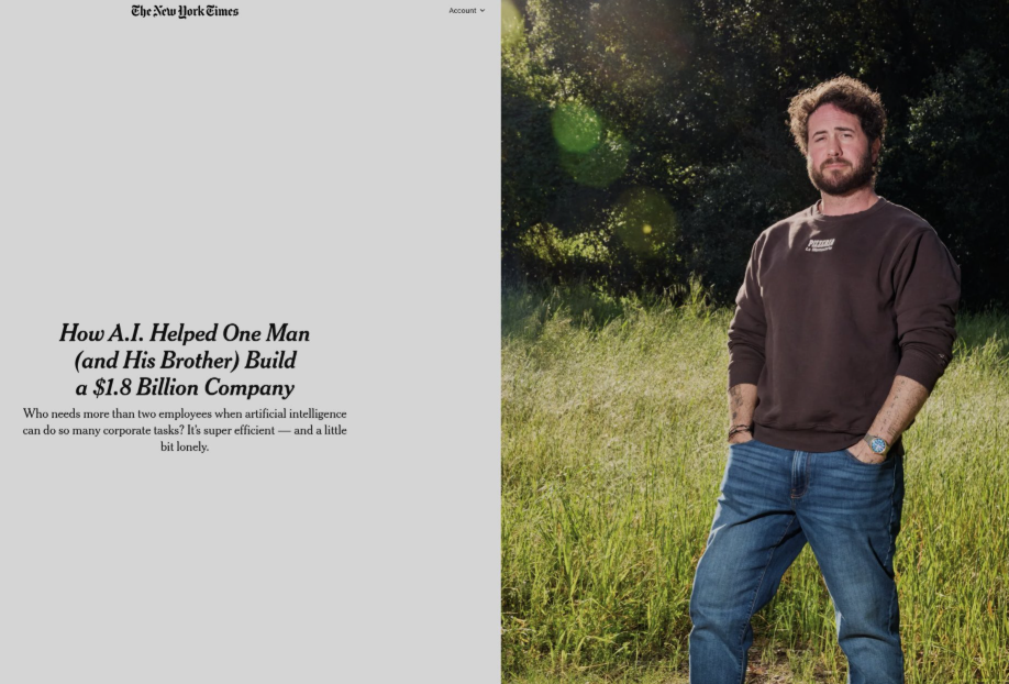바이럴의 주인공은 바로 매튜 갤러거(Matthew Gallagher)입니다. 아마 '1인 유니콘' 혹은 '직원 2명의 1.8조 가치 기업'이라는 자극적인 헤드라인으로 그의 소식을 접하신 분들도 계실 겁니다. 샘 알트만이 "머지않아 1인 빌리언 달러 컴퍼니가 나올 것"이라고 예언했을 때, 많은 이들이 그것을 먼 미래의 일로 치부했습니다. 하지만 그 미래는 생각보다 훨씬 빨리, 그리고 훨씬 압도적인 모습으로 우리 눈앞에 나타났습니다.