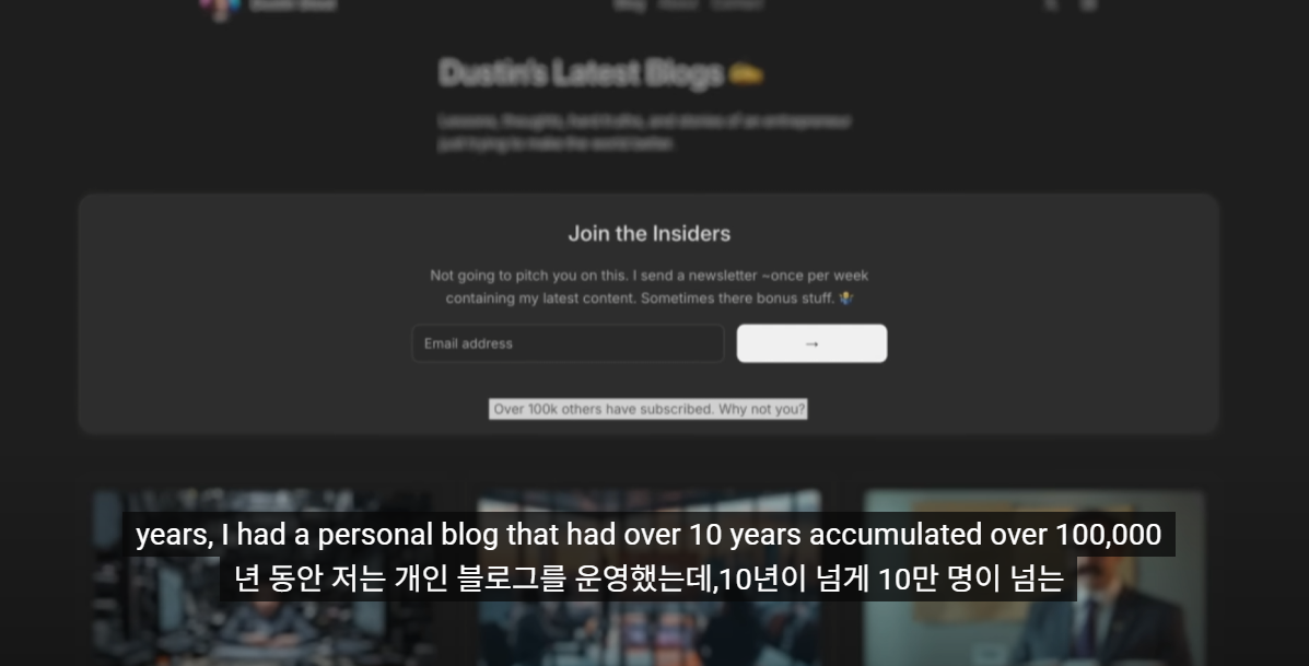 더스틴의 서비스가 초기에 폭발적으로 성장할 수 있었던 가장 결정적인 요인은 무엇일까요? 놀랍게도 그것은 기술의 우월함이나 화려한 마케팅이 아니었습니다. 그가 지난 10년간 꾸준히 운영해 온 개인 블로그와 거기서 쌓은 10만 명의 이메일 구독자, 즉 ‘신뢰 자산’이었습니다.
