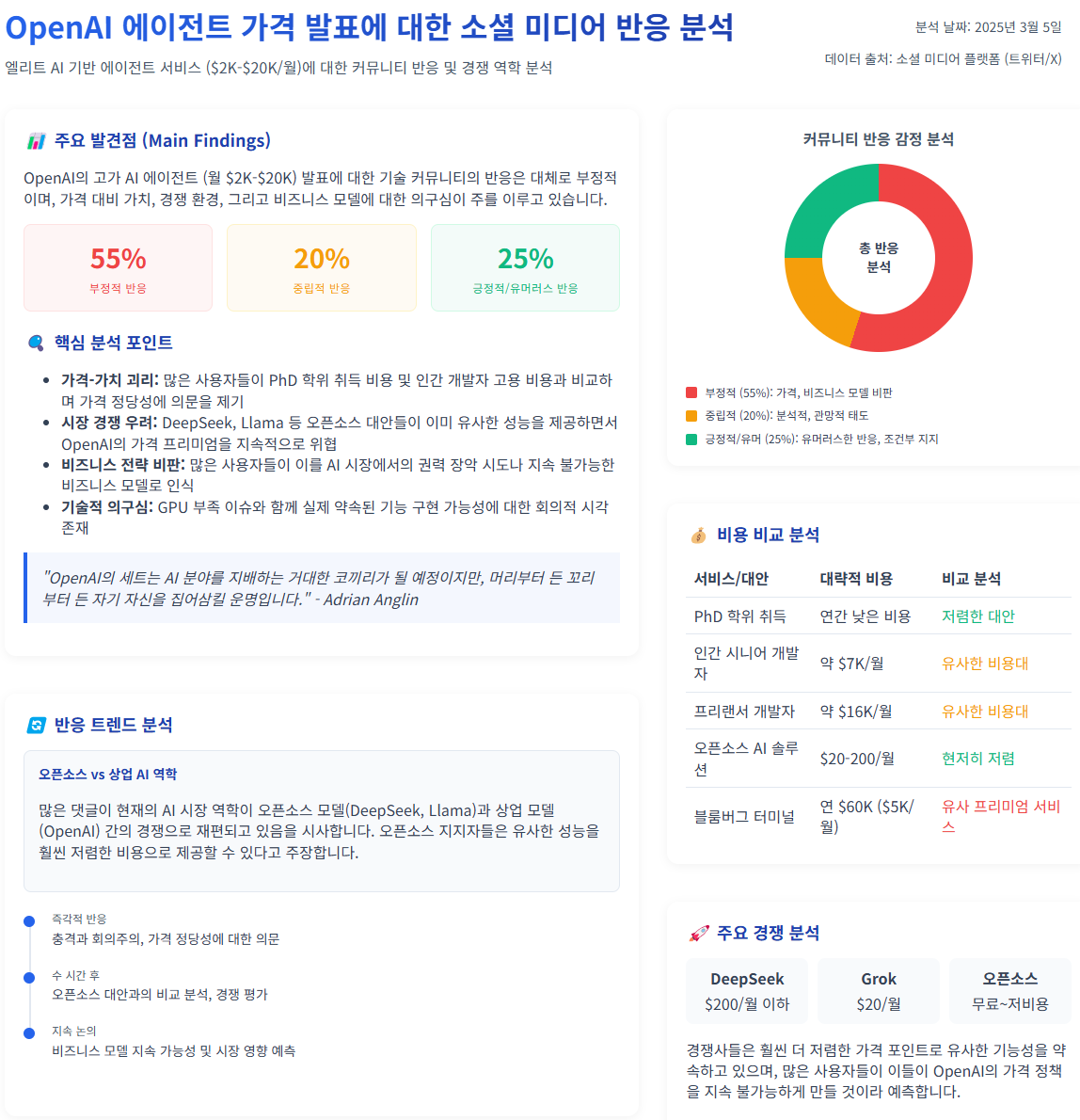 - 가격-가치 괴리: 많은 사용자들이 PhD 학위 취득 비용 및 인간 개발자 고용 비용과 비교하며 가격 정당성에 의문을 제기