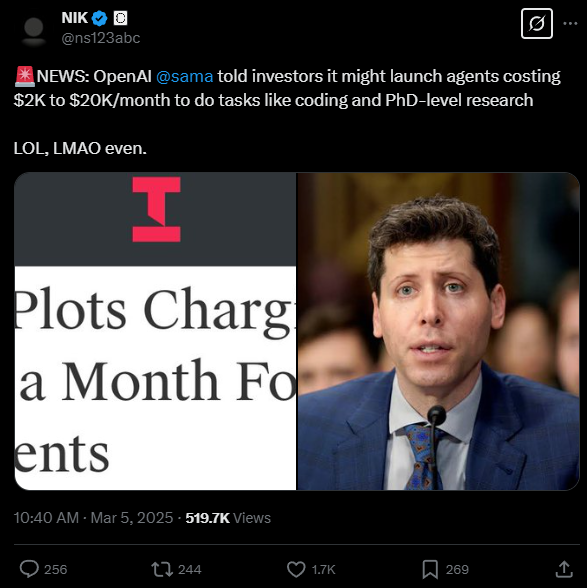 OpenAI, ‘월 2천~2만 달러’ AI 에이전트 출시 검토…VS QwQ-32B 발표!?