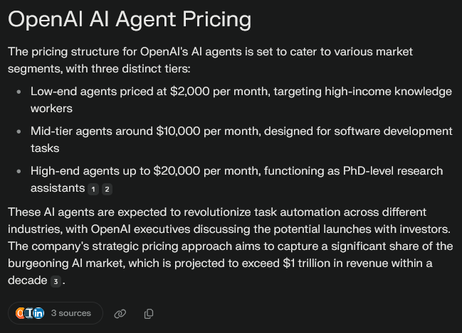 위와같은 의문을 던지고 있습니다. 여러분은 어떻게 생각하시나요? 제 의견은 솔직히 말씀드려서 $2,000의 비용이 한계라고 생각합니다. 2만불의 비용을 내면서 사용하는 서비스는 과연 지속이 가능할까? 라는 생각을 해봅니다. 물론 기업에서는 사용할 수 있겠지만 기업에서 사용한다면 정말 지금 우리 머리속에 그려진 일들을 자동화로 에이전트가 깔끔하고 실수없게 해줄 수 있어야할텐데 그것이 가능할지? 잘 모르겠습니다. 아직까지 LLM을 신뢰할 수 없는 부분이 많다는 것은 여러분들도 아실것이라 생각합니다.