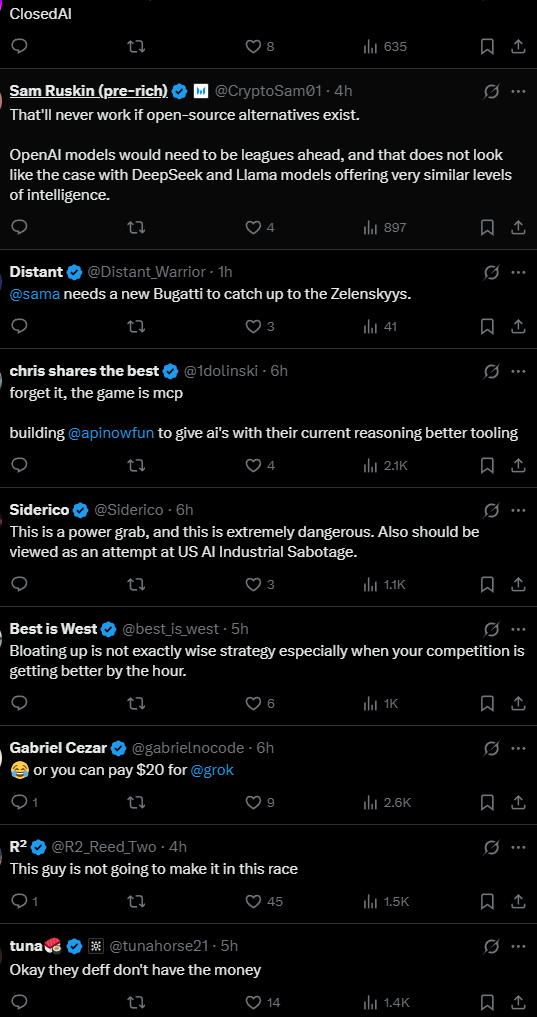 - 비즈니스 전략 비판: 많은 사용자들이 이를 AI 시장에서의 권력 장악 시도나 지속 불가능한 비즈니스 모델로 인식