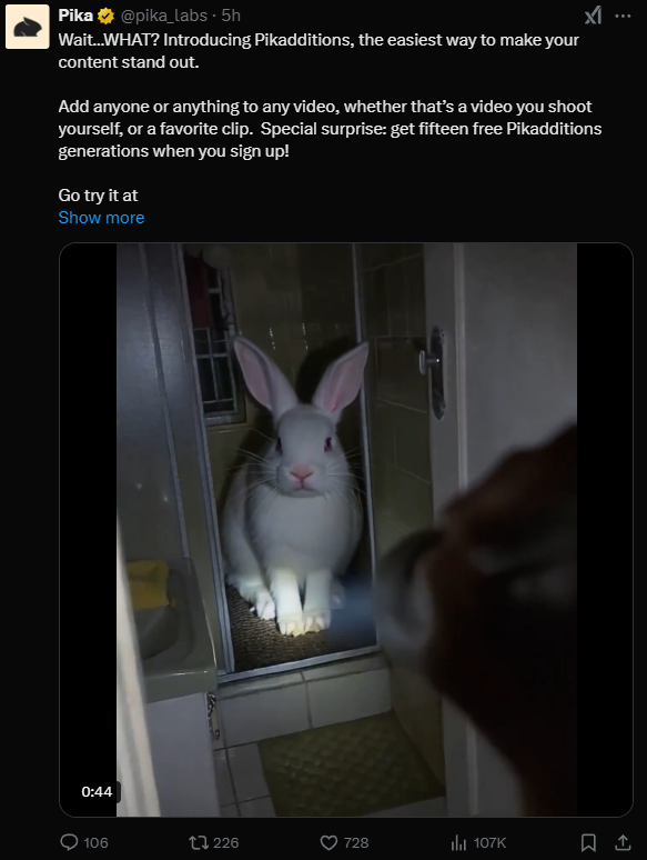 Pika Labs, ‘Pikadditions’ 출시 – 원하는 인물·사물을 영상 어디든 삽입!
