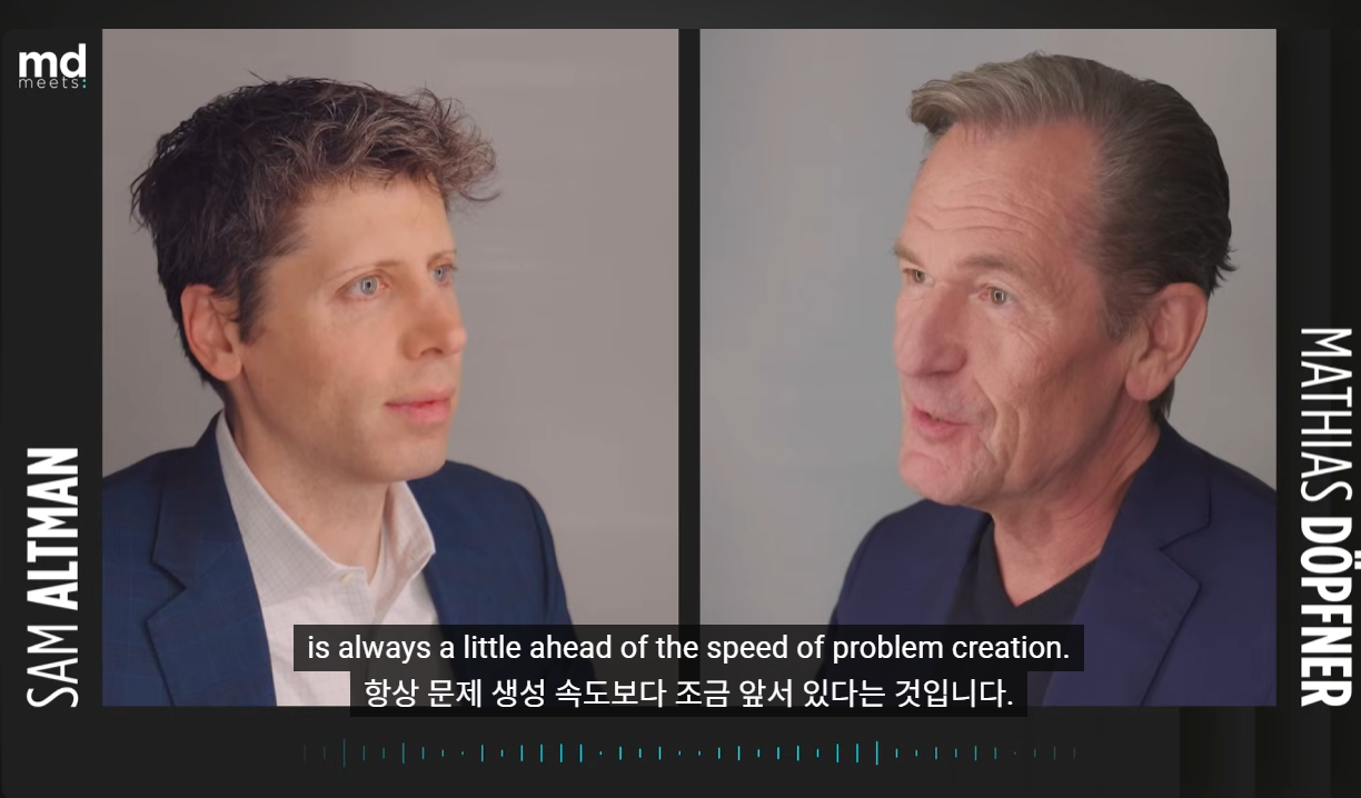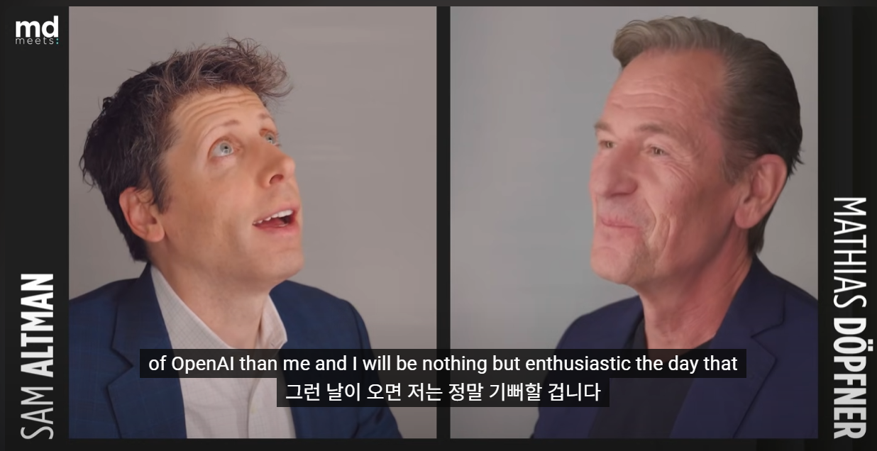 잘 지내고 계신가요? 오늘도 AI 분야의 가장 중요한 인물 중 한 명인 샘 알트만의 인터뷰를 통해, 우리가 어디로 향하고 있는지 함께 고민해 볼 깊이 있는 화두를 가져왔습니다. 최근 독일의 미디어 그룹 악셀 슈프링어(Axel Springer)의 CEO, 마티아스 되프너(Mathias Döpfner)와 나눈 대담 내용인데요.