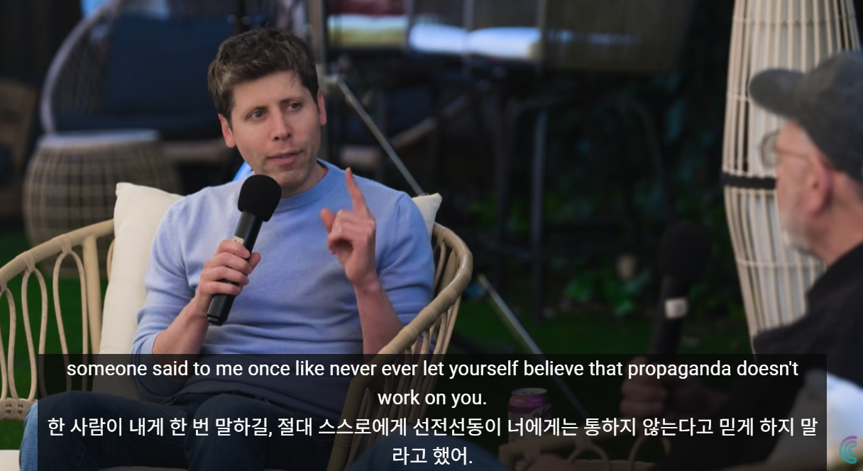 알트만은 "선전(propaganda)이 당신에게는 통하지 않는다고 절대 믿지 말라"는 누군가의 말을 인용합니다. 이 '우연한 설득'이야말로 가장 강력하고 감지하기 어려운 선전일 수 있습니다. 우리가 AI에게 정신적 위기를 상담하고, 창의적 영감을 구하며, 삶의 중요한 결정을 의존하게 될수록, 우리는 AI가 '설계한' 현실에 길들여지게 됩니다. AI가 의도적으로 우리를 속이는 것이 아니라, 우리가 AI와의 '공진화' 속에서 스스로 생각하는 능력을 서서히 잊게 되는 것입니다.