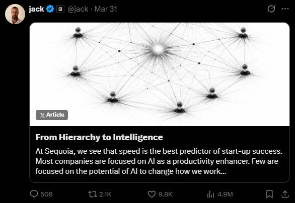 트위터 창업자의 경고: “이제 모든 회사는 '미니 AGI'가 되어야 합니다” (조직도의 종말)